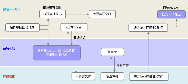當(dāng)社で行う「住宅申請代行サポート」業(yè)務(wù)とは、住宅の性能評価?長期優(yōu)良住宅?BELSの住宅申請代行業(yè)務(wù)と、省エネルギー性能値(斷熱+一次エネ)計(jì)算の代行業(yè)務(wù)を行います。